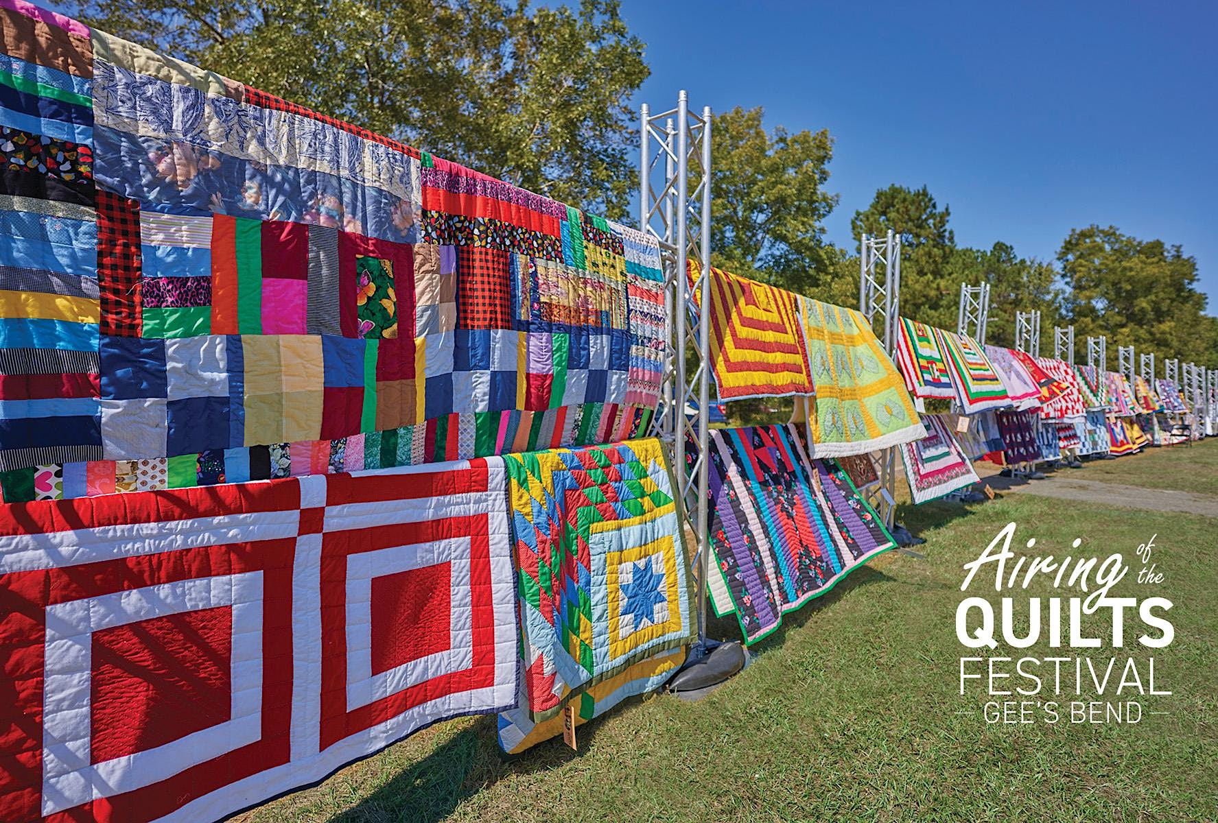 12021 Co Rd 29 12021 County Road 29, Boykin, AL, United StatesThe Gee’s Bend Airing of the Quilts Festival is free to attend. A suggested donation of $25 supports the Gee’s Bend quiltmaking community.Join the Gee’s Bend community in this annual celebration of its generations-old quiltmaking tradition, featuring quilt displays and sales, workshops, guided tours, panel discussions, food, music, and more.Known for bold, improvisational designs and …